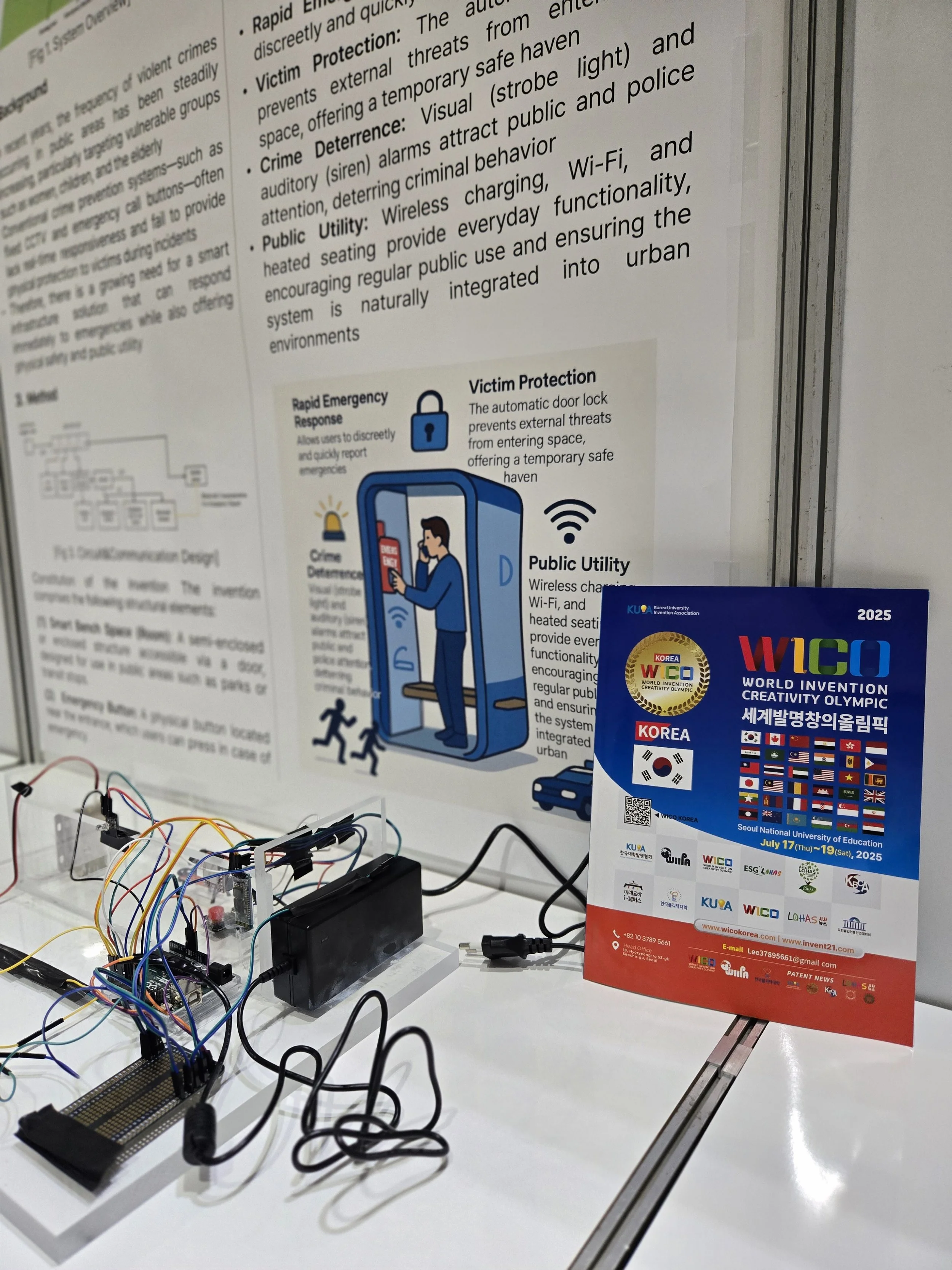 Developed a Smart Bench with emergency alerts, protective enclosures, crime deterrents, and public utilities; presented at the 2025 World Invention Creativity Olympics, winning Silver Medal.
